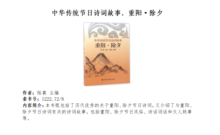 读遍书山·荐读“我们的节日——重阳节”图书推荐