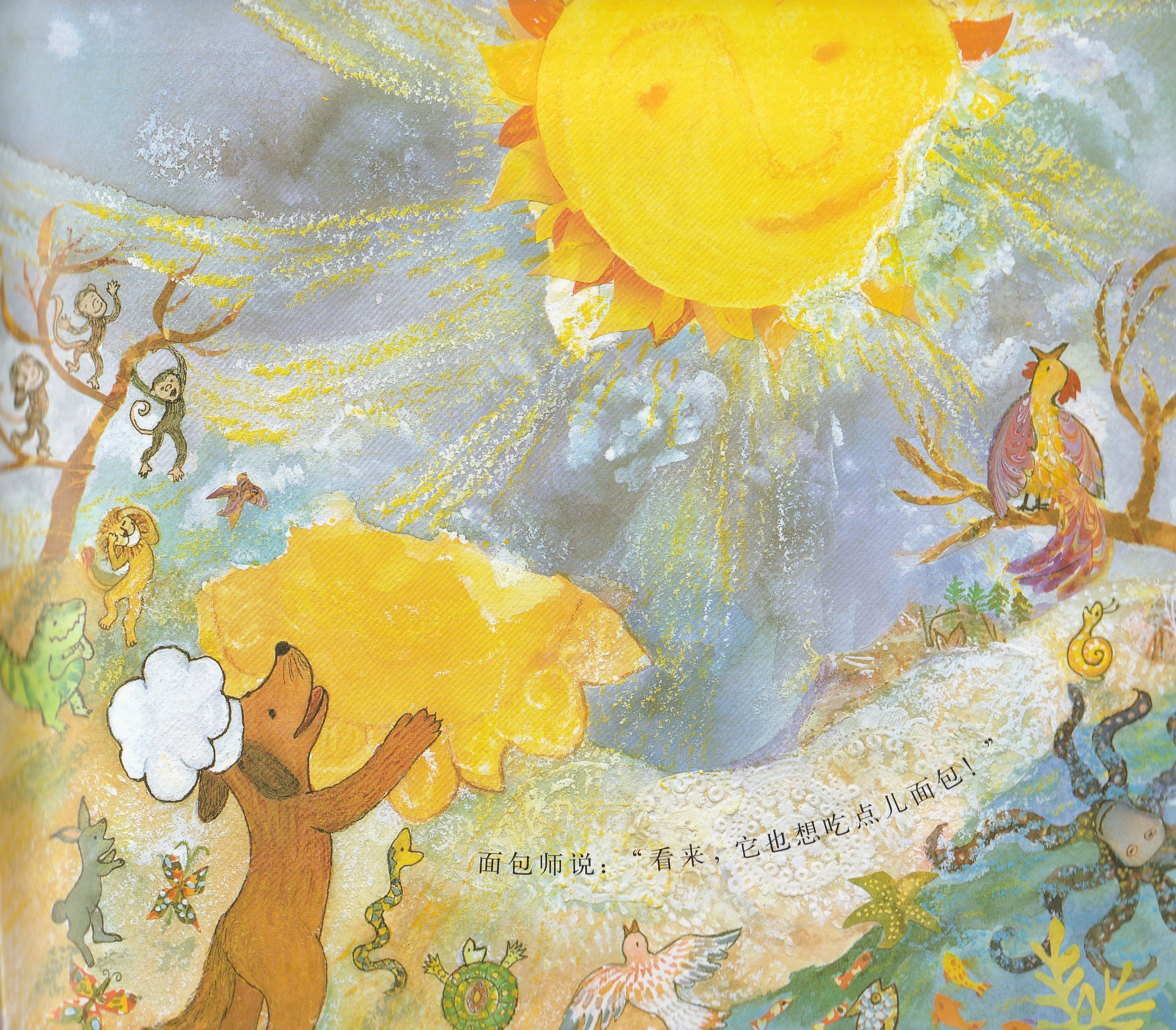 本书是启发精选世界优秀畅销绘本系列之一,适合3岁以上儿童阅读。作者以美妙辉煌的绘图呈现了狗狗面包师召唤太阳的故事,展现了一个梦幻般和谐而美好的自然世界,在潜移默化中告诉孩子,追求梦想的真挚感情可以超越一切隔膜和界限。欢乐盛大的画面中,众多可爱可亲的动物和诸多好看好玩的细节,引诱小朋友的好奇心去观察发现;略带悬疑色彩的故事,会牢牢抓住小朋友的好奇心,促使小朋友跟着面包师一起期待太阳的出现。书后还附有一份烘焙食谱,教你烤制自己的太阳面包!
