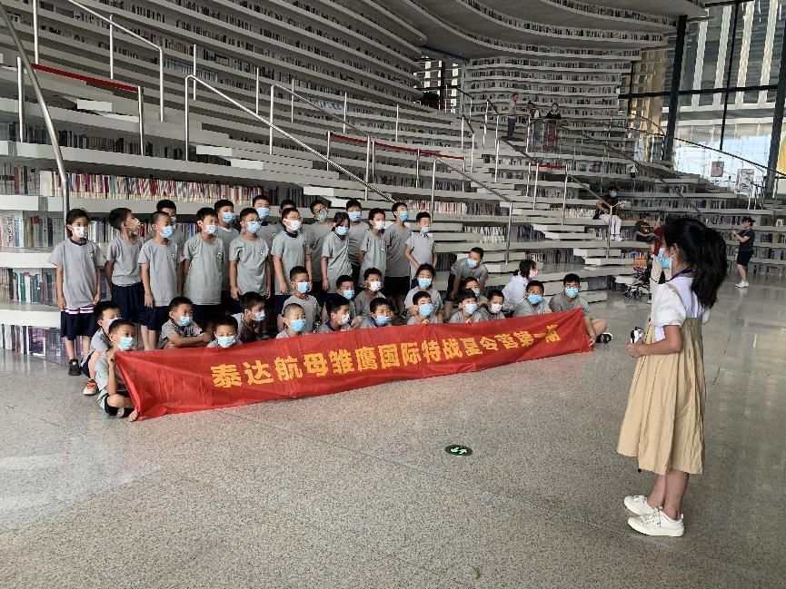 滨海新区图书馆与企业跨界合作开展小小馆员研学夏令营活动。肯德基奇奇夏令营、泰达航母雏鹰国际特战夏令营先后在滨海新区图书馆开营。