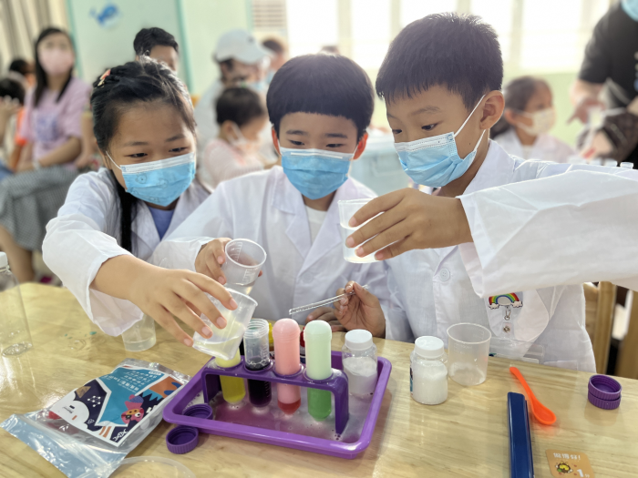 在老师讲解说明完实验过程中需要注意的事项后,早已等候多时的“小科学家”们迅速拿起试管,按照实验步骤操作起来,一个个神奇、好玩的化学现象映入眼帘,“哇,太神奇了,五颜六色的!”在实验过程中,孩子们连连惊呼。用贴近生活的实际问题,帮助孩子们激发探究兴趣、开阔科学视野、学习科学知识。孩子们从好玩、好奇到提问、思考再到动手实验、制作,让科学的种子在孩子心里扎根。这次活动的开展,不仅让孩子们产生对科学的兴趣,感受现代科技发展的魅力,激发学生爱祖国、爱科学的热情,树立正确的人生观、价值观。