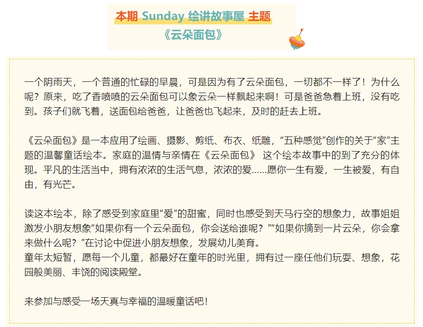 “Sunday绘讲故事屋”故事邀请函——《云朵面包》本周日与你不见不散