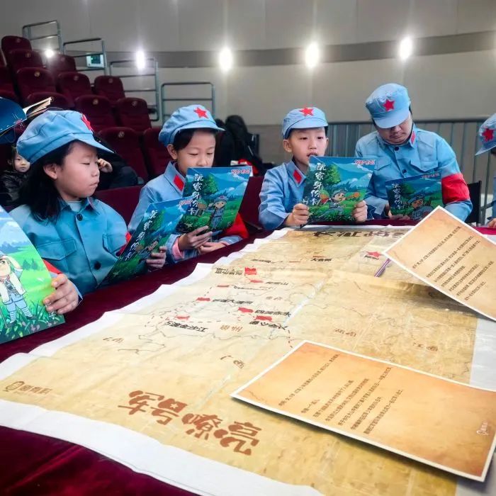 重走长征路环节,小读者们自由组合两人一组,双手拉紧地图,从瑞金出发,按路线依次通过标有红旗的长征重要事件发生地,最后抵达延安;先遣团选拔环节,小读者们通过手心手背方式,决定进入草地的先后顺序,从毛儿盖出发,向相邻的格子迈进,判断周边是沼泽还是草地,草地可继续前行,沼泽需要退回,换下一个小读者继续进入,最终队员通过草地到达班佑;办法总比困难多环节,需要在岷山脚下的唐家河、王朗、九寨沟三个县城采购生活物品。读者们通过向主持人提问获取信息,最终找出有淳朴老百姓的县城,到那里采购价格低的物品;运筹帷幄环节,小读者们在侦查中发现岷山不但地形复杂、地势险峻,并且布满地雷,需要破译情报,弄清楚据点分布和敌军的兵力部署,穿越敌军的地雷阵……
