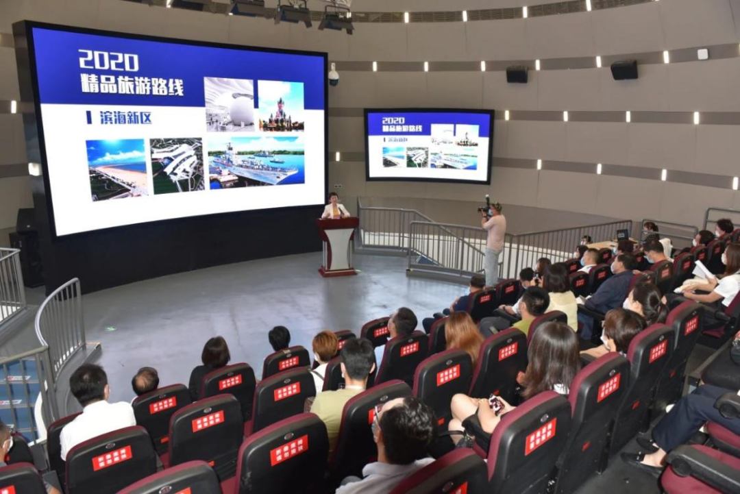 充分调动和利用“滨海之眼”传播优势进行文旅推广,搭建旅游信息发布会平台,多次组织滨海新区精品旅游线路发布会,推出滨海休闲、工业体验、历史文化、都市风光、科普教育、亲子陪伴、红色旅游等多个主题精品旅游线路,为百姓游滨城提供权威信息,实现一馆游天下。