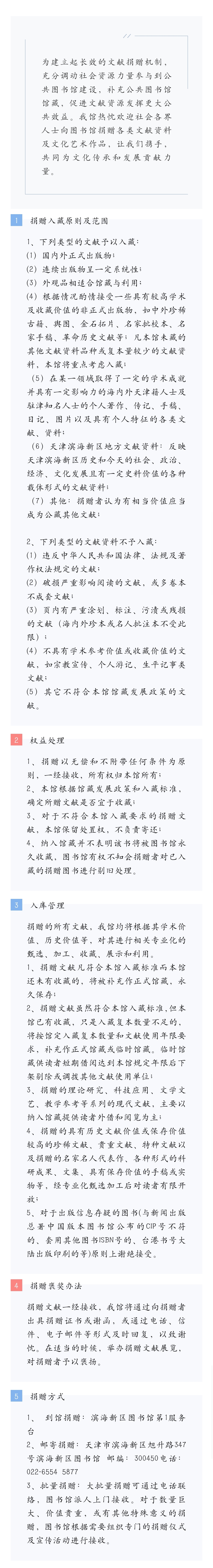 天津市滨海新区图书馆关于接受文献捐赠的公告